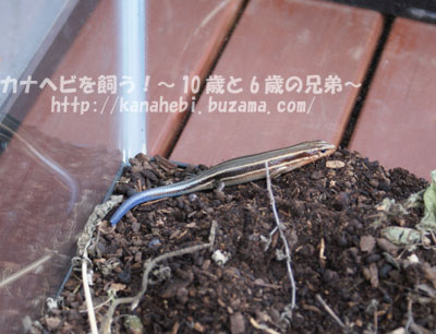 ニホントカゲ 2023 2/28 未分類 2023年2月28日 尻尾が紫のニホントカゲを長男がゲットしました。尻尾が紫なのは幼体だけらしいです。ニホントカゲは自ら尻尾を自切して敵の注意を惹きます。 次男の手の上でまだ動いている尻尾。 尻尾が紫でないニホントカゲもゲット。カナヘビと比べるとニホントカゲは首が太いです。 未分類 カナヘビの脱皮 関連記事 カナヘビのえさ 2023年2月28日 カナヘビのたまご 2023年2月28日 カナヘビの世話 2023年2月28日 カナヘビの住まい 2023年2月28日 カナヘビの孵化 2023年2月28日 カナヘビの脱皮 2023年2月28日