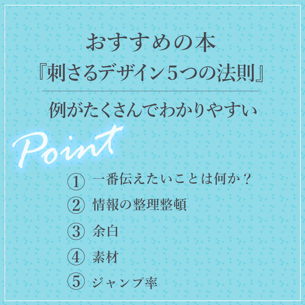 「刺さるデザイン5つの法則」は例がたくさん掲載されており分かりやすくておすすめの本です。