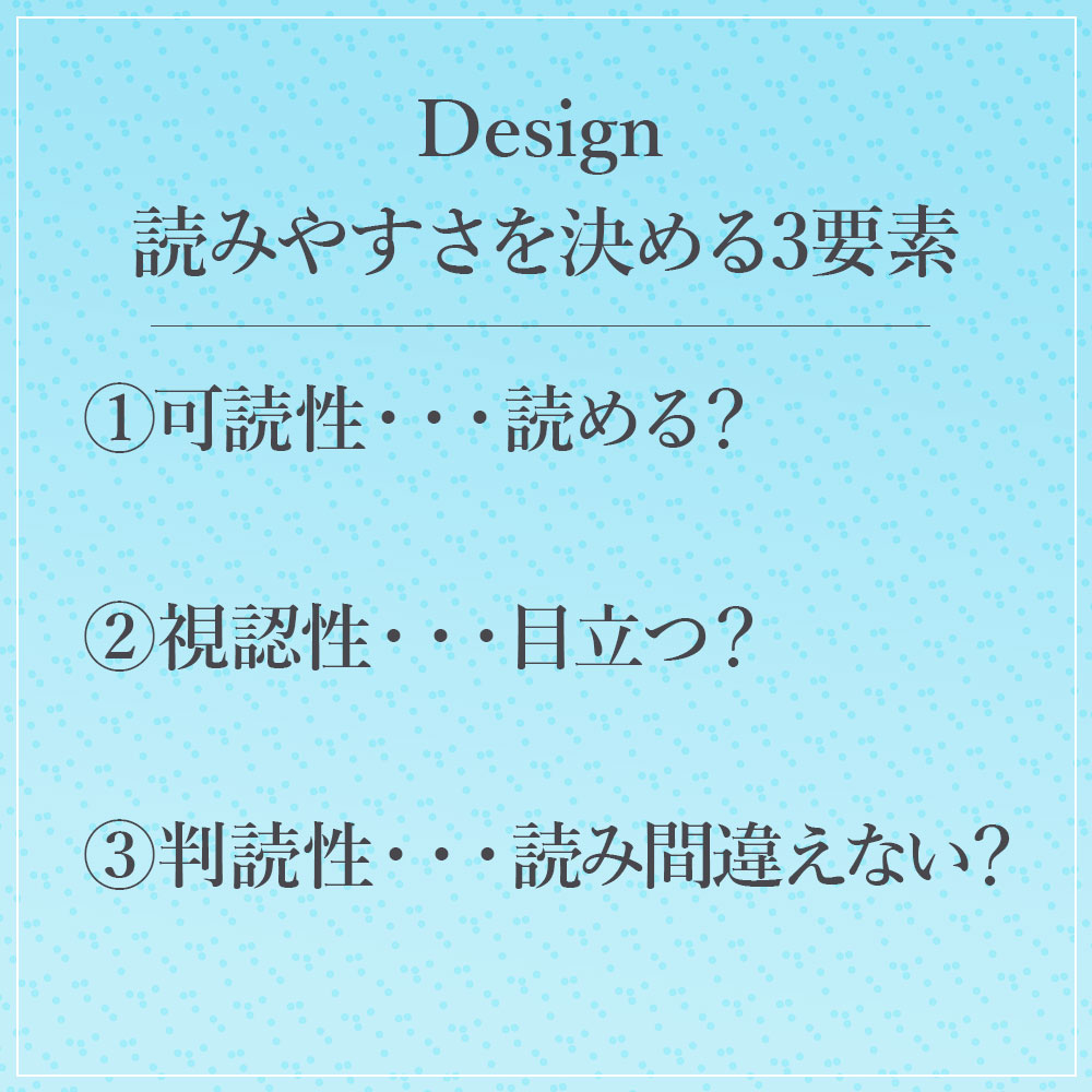 判読性とは、わかりやすいか。正確に意味を伝える。思いやりともいわれています。