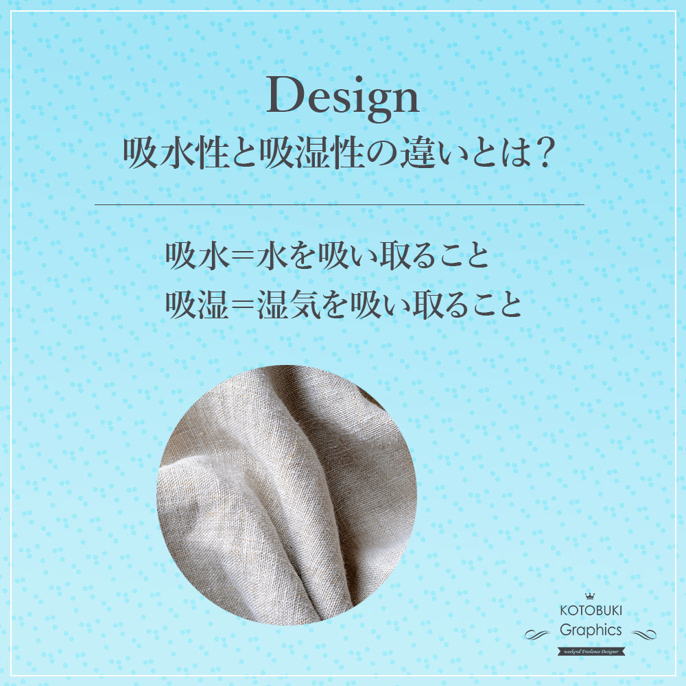 吸湿性とは字のごとく、湿気をよく吸うということで、空気中の湿気をよく吸う。なので肌に触れた時に涼しく感じ夏にピッタリというPRができます。