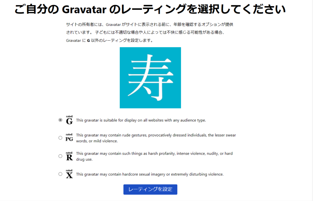 レーティングってあまり聞き慣れない言葉ですが、Gにしておけばよいようです。