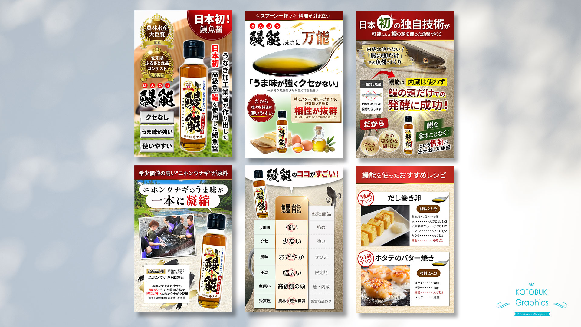 こちらはリニューアルとのことで、私のポートフォリオから鰻魚醤の商品画像を見てお声掛けいただきました。